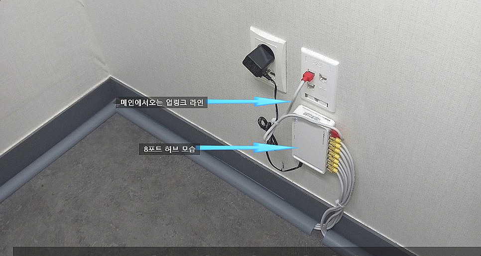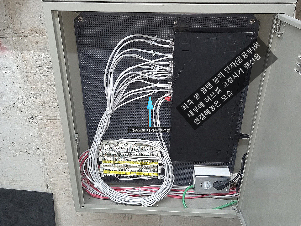 내부 인테리어 공사 전, 선 매립 작업 및 벽면 단자함 구성
