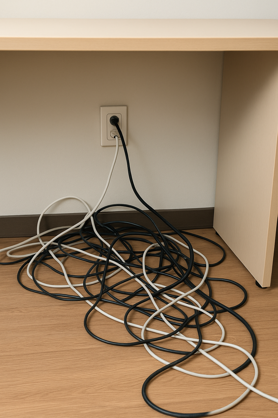 그런데 책상 아래 전선들이 얽히고설켜 있다면… 첫인상부터 마이너스죠.